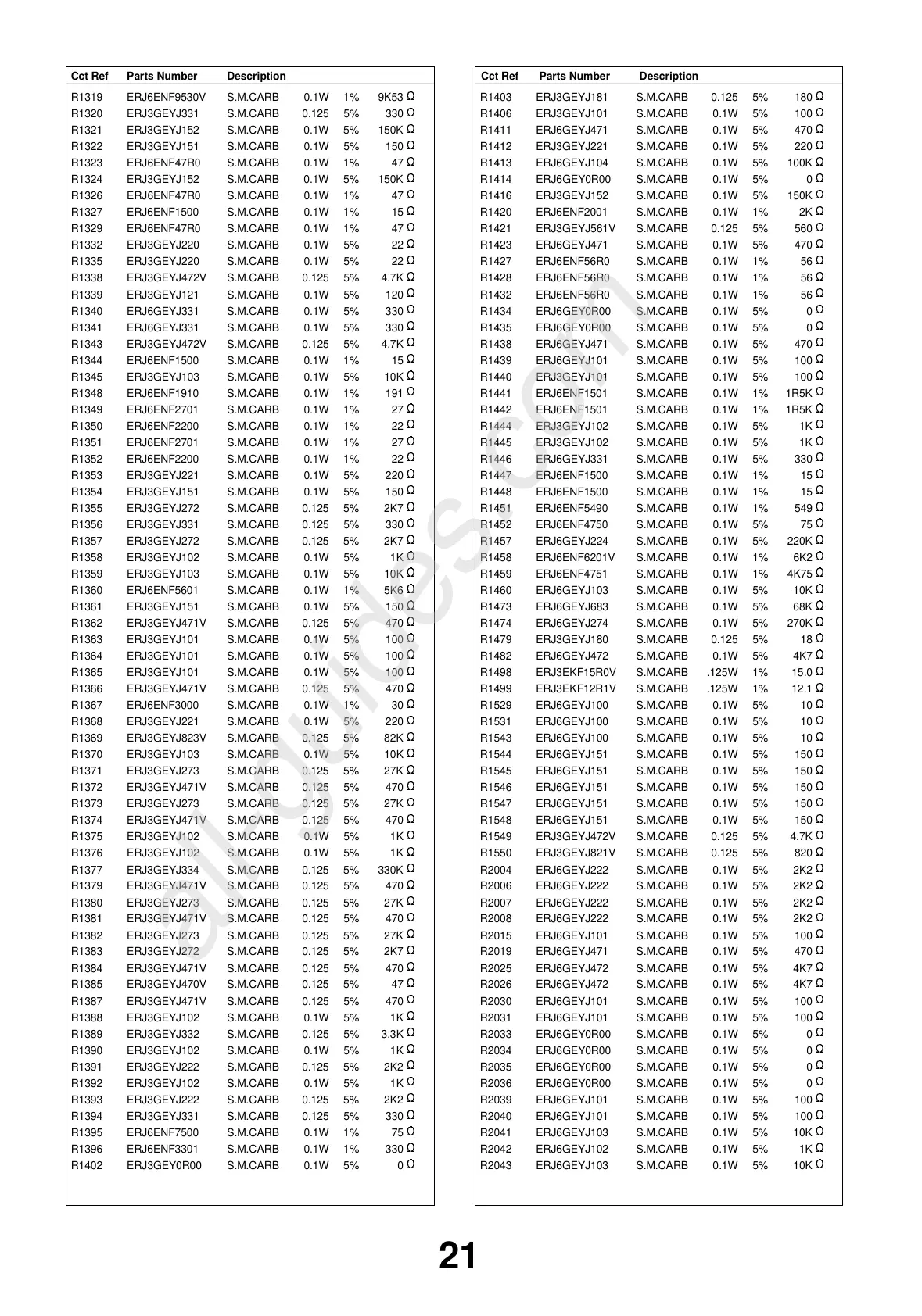 DescriptionCct Ref Parts Number DescriptionCct Ref Parts Number