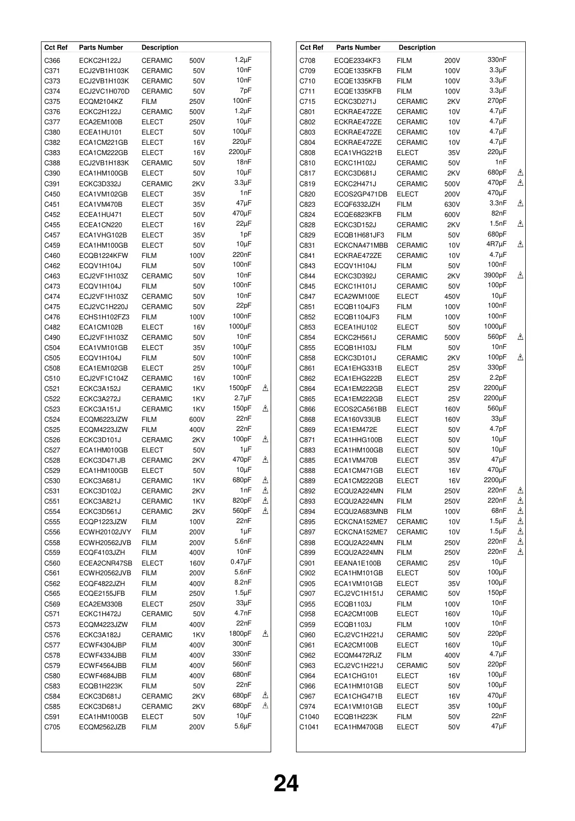 DescriptionCct Ref Parts Number DescriptionCct Ref Parts Number