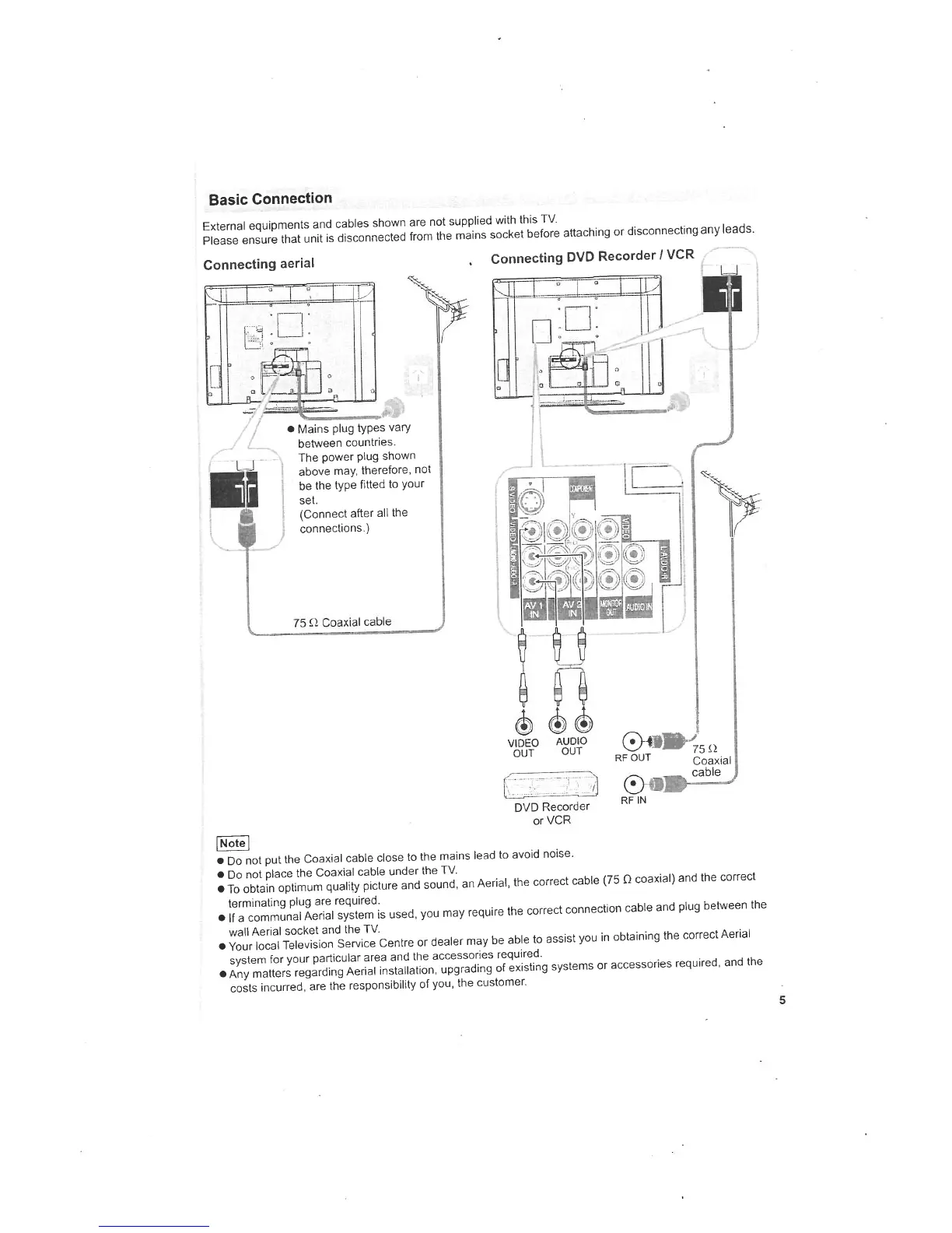 Panasonic TX-37LX75A - Basic Connection; Connecting Aerial and External Equipment; Connection Notes and Tips