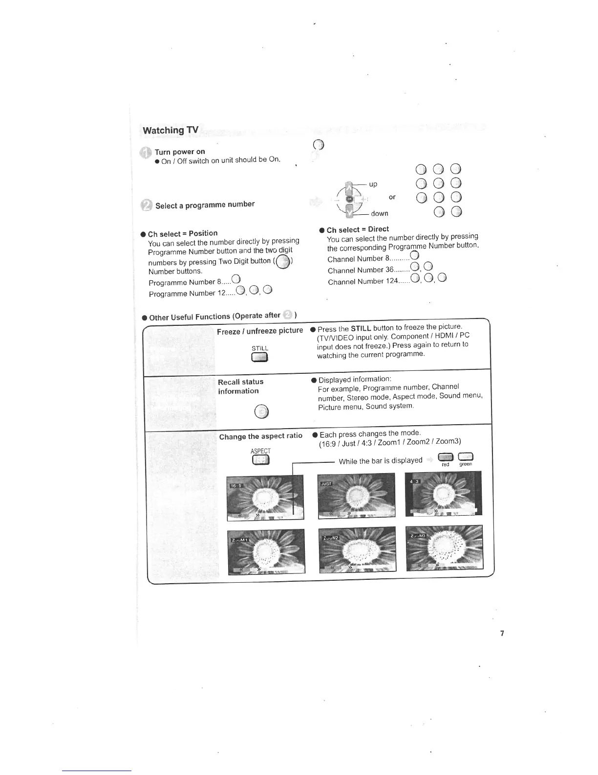 Panasonic TX-37LX75A - Watching TV; Selecting Programmes; Picture Adjustment Functions