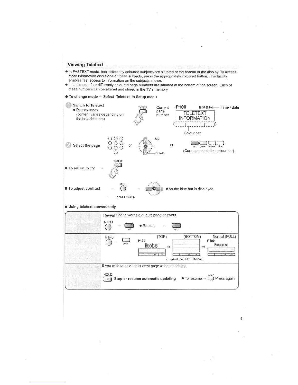 Panasonic TX-37LX75A - Viewing Teletext; Basic Teletext Operations; Convenient Teletext Features