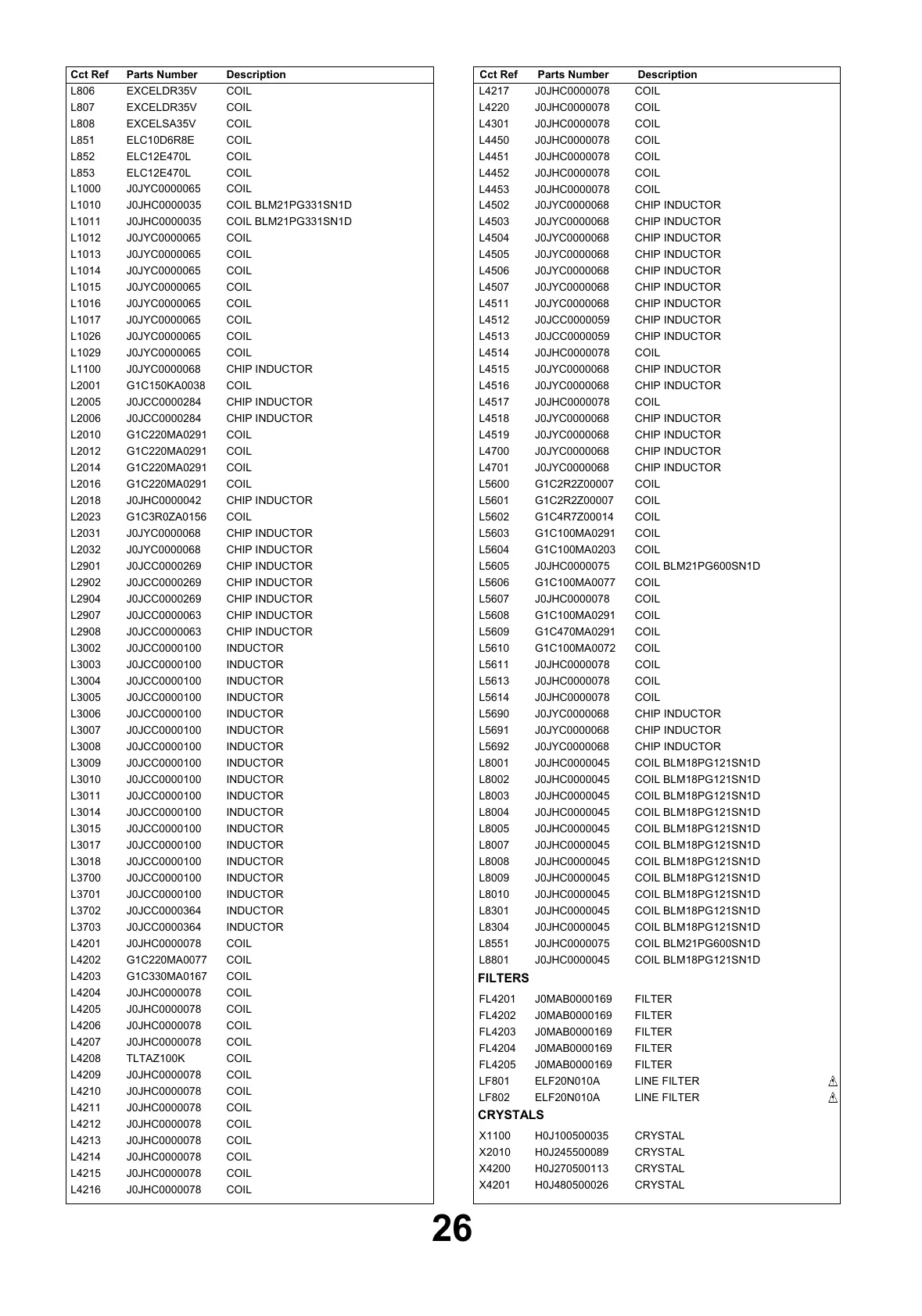 DescriptionCct Ref Parts Number DescriptionCct Ref Parts Number