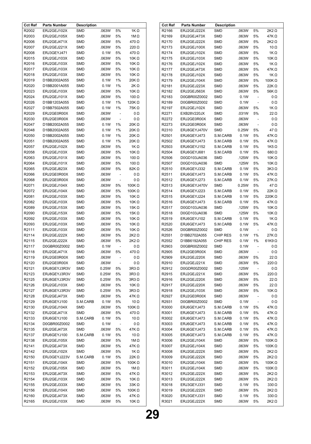 DescriptionCct Ref Parts Number DescriptionCct Ref Parts Number