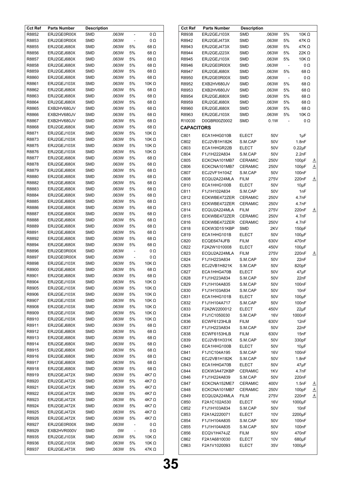 DescriptionCct Ref Parts Number DescriptionCct Ref Parts Number