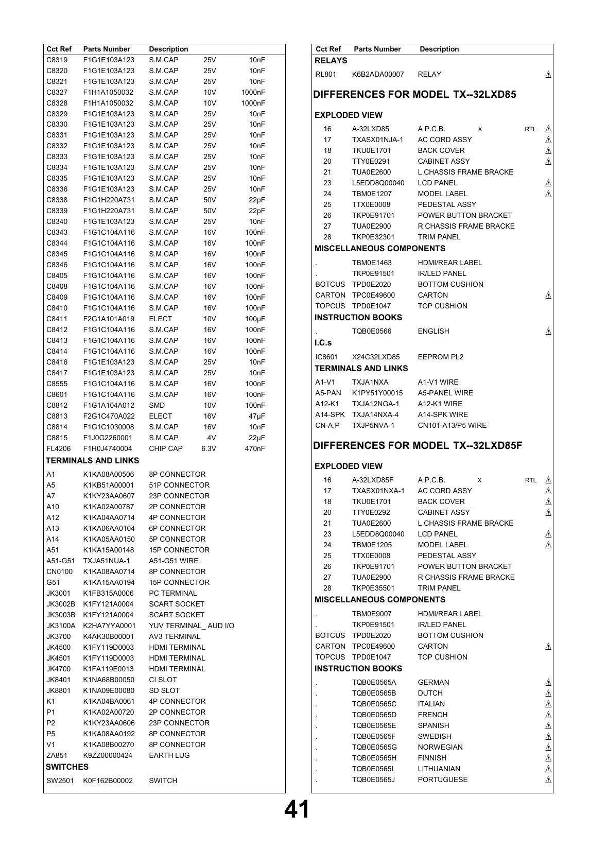 DIFFERENCES FOR MODEL TX--32LXD85F