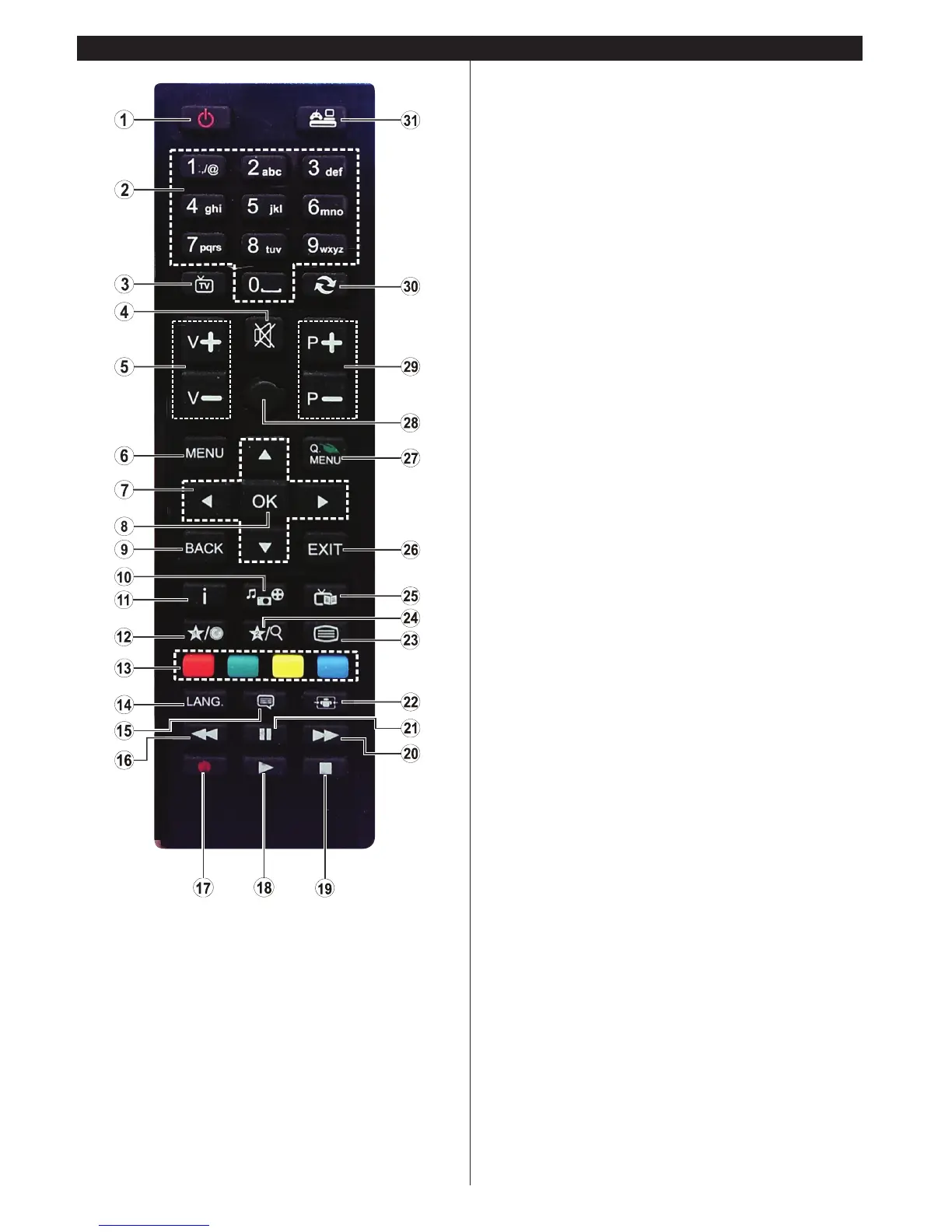 1. Veille : Met le téléviseur sous/hors tension