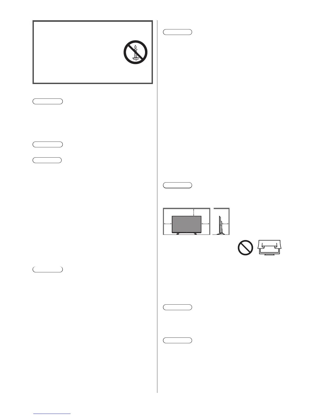 Allow sufficient space (at least 10 cm) around the TV in
