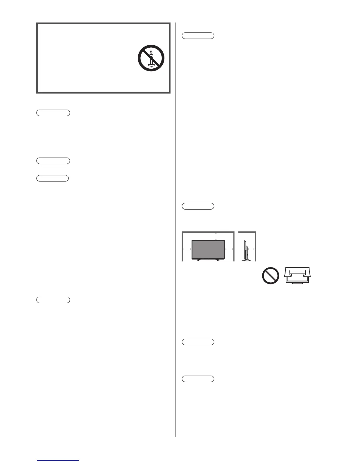 Allow sufficient space (at least 10 cm) around the TV in