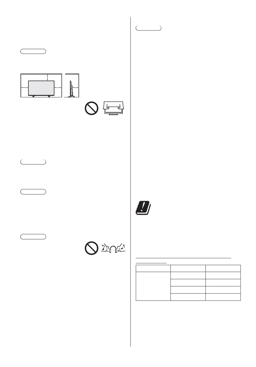 Allow sufficient space (at least 10 cm) around the TV in