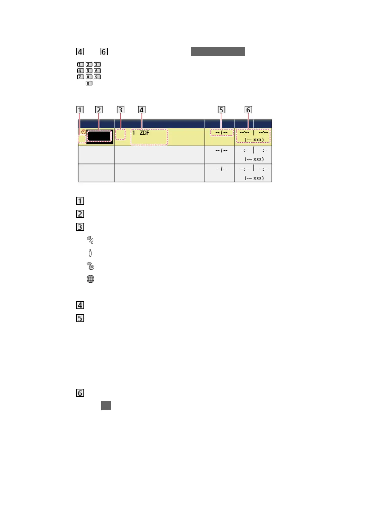 Channel position, channel name, etc.