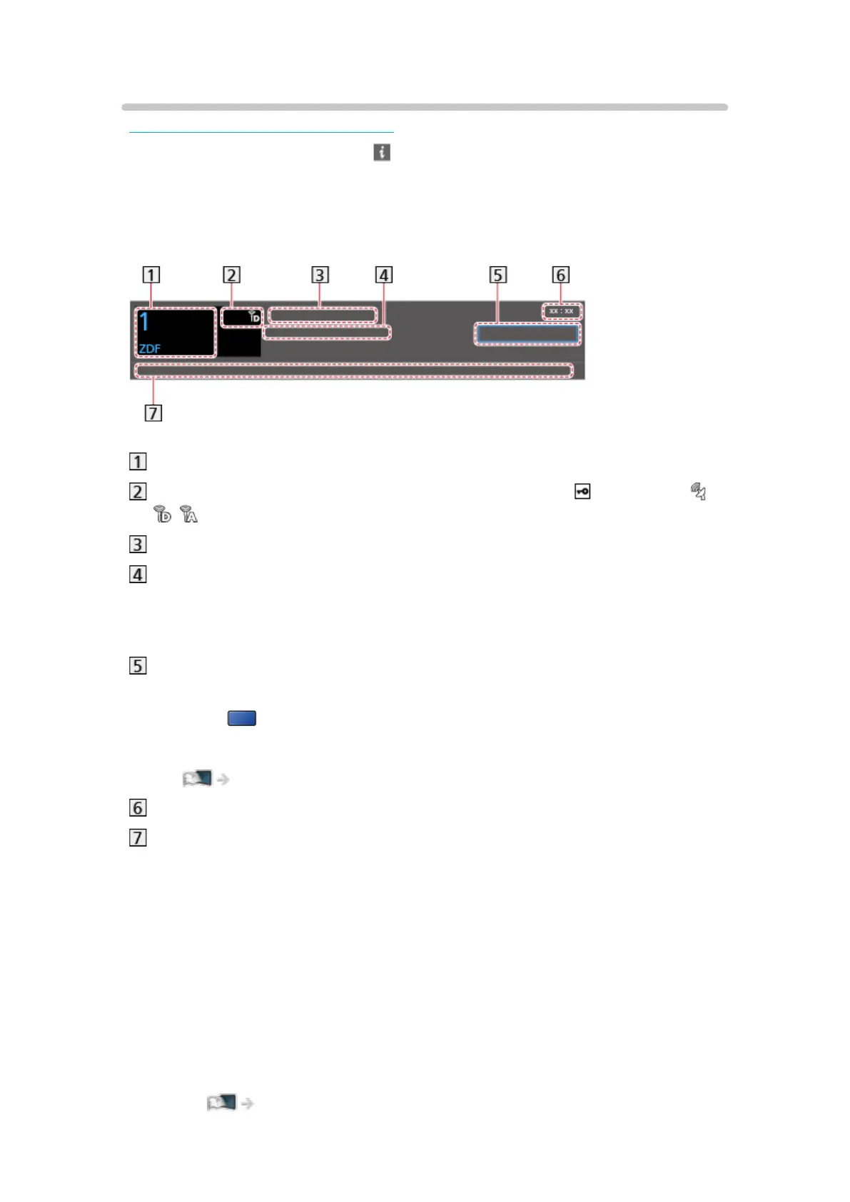 Channel type (Radio, HDTV, etc.) / Encrypted channel ( ) / TV mode ( ,