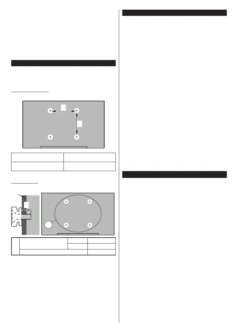 Bemærk: De skruer til montering af TV'et på vægbeslag