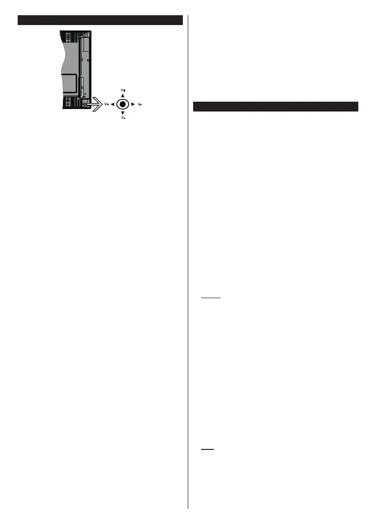 För att stänga av TV:n: Tryck in mitten av spaken för