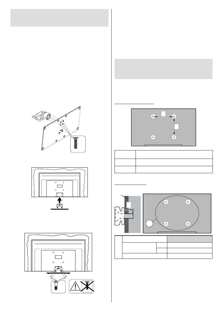 Observera: Skruvarna för att fästa TV:n på väggfästet