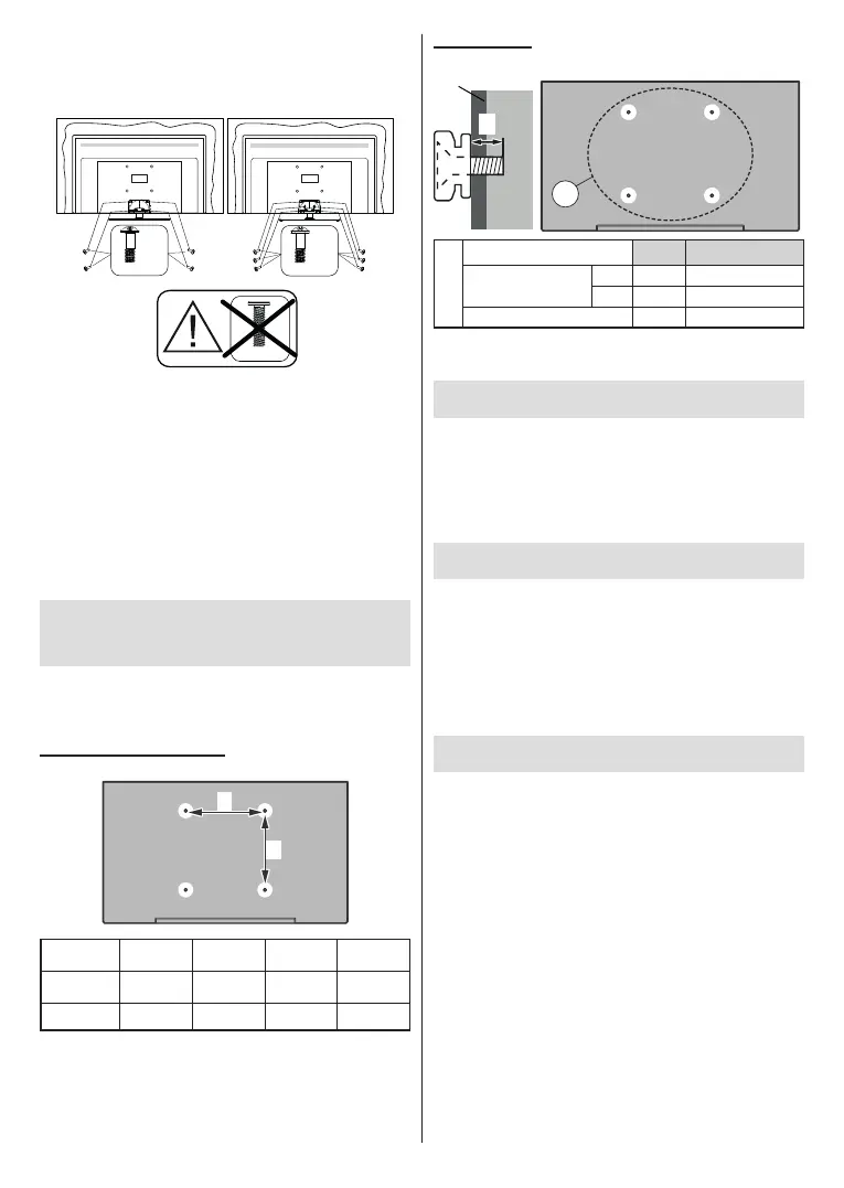 Nota: Le viti per il ssaggio della TV mediante staa a parete
