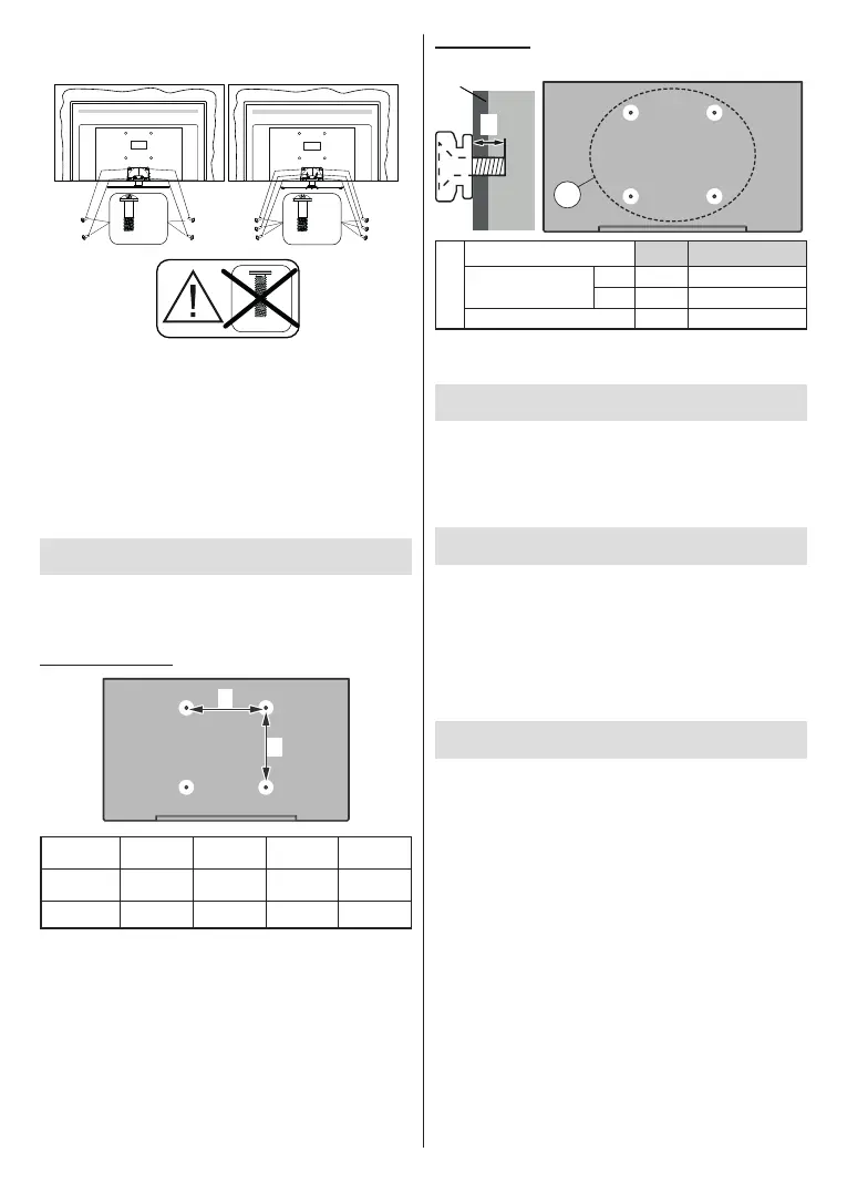 Bemærk: De skruer til montering af TV'et på vægbeslag