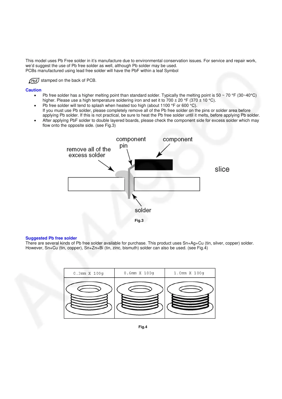 This model uses Pb Free solder in it’s manufacture due to environmental conservation issues. For service and repair work,