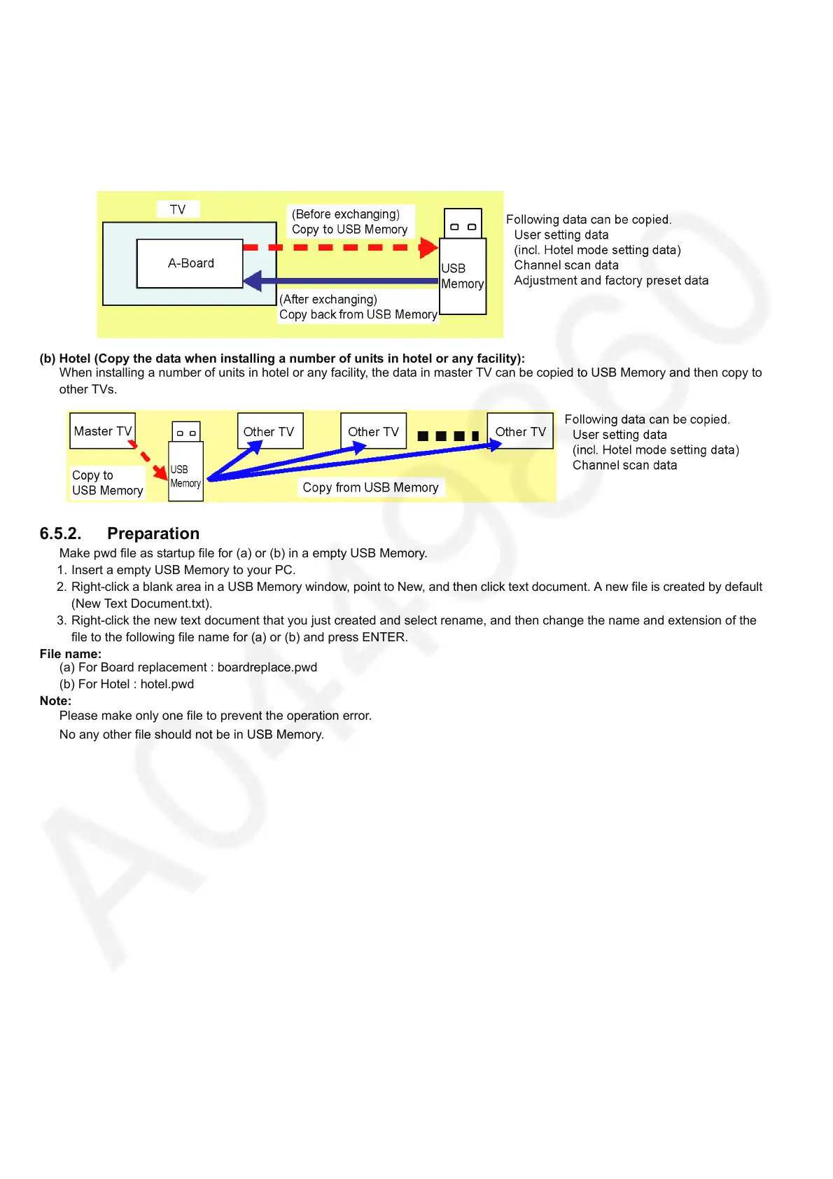 When exchanging A-board, the data in original A-board can be copied to USB Memory and then copy to new A-board.