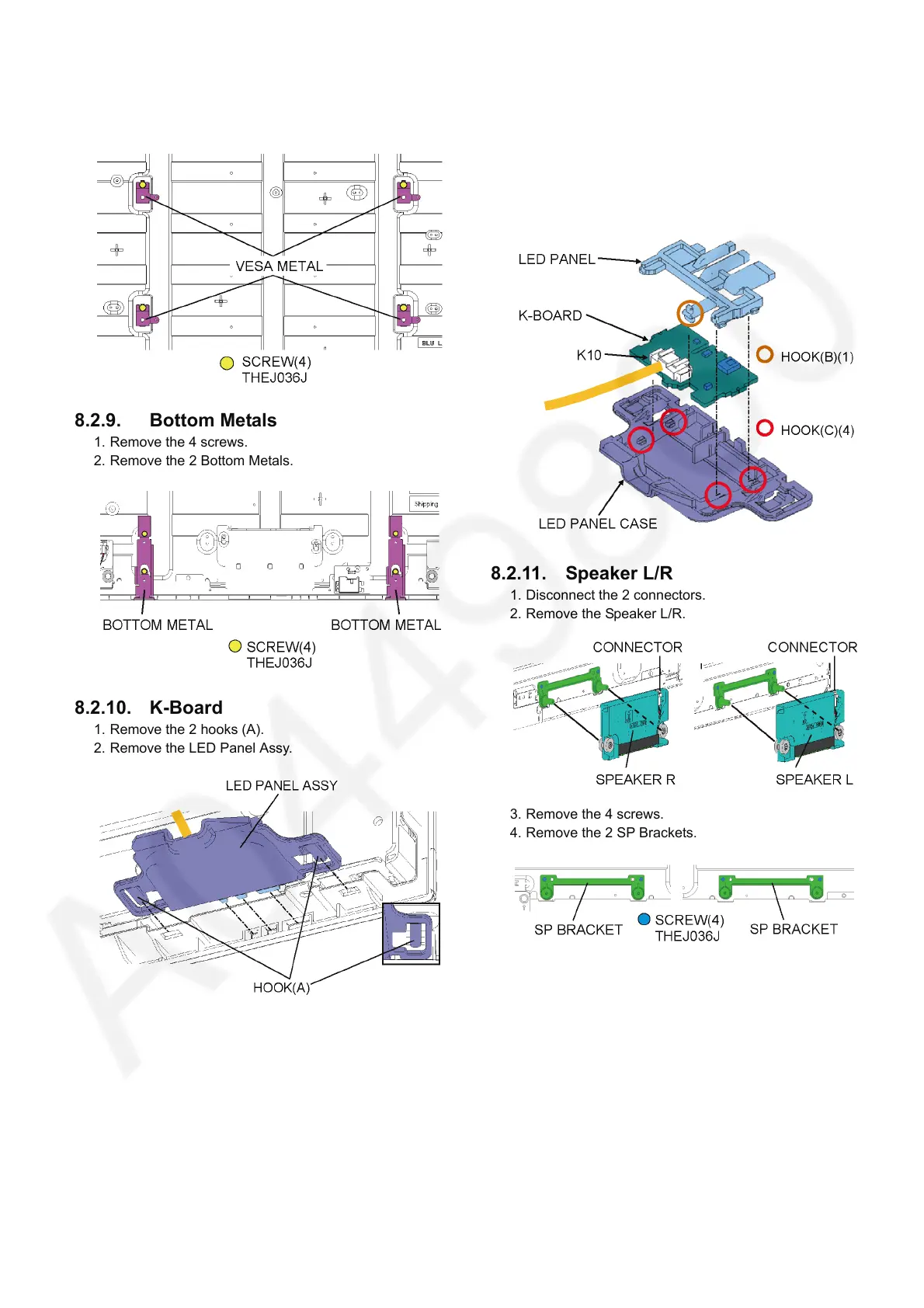 5. Remove the K-Board and the LED Panel from the LED