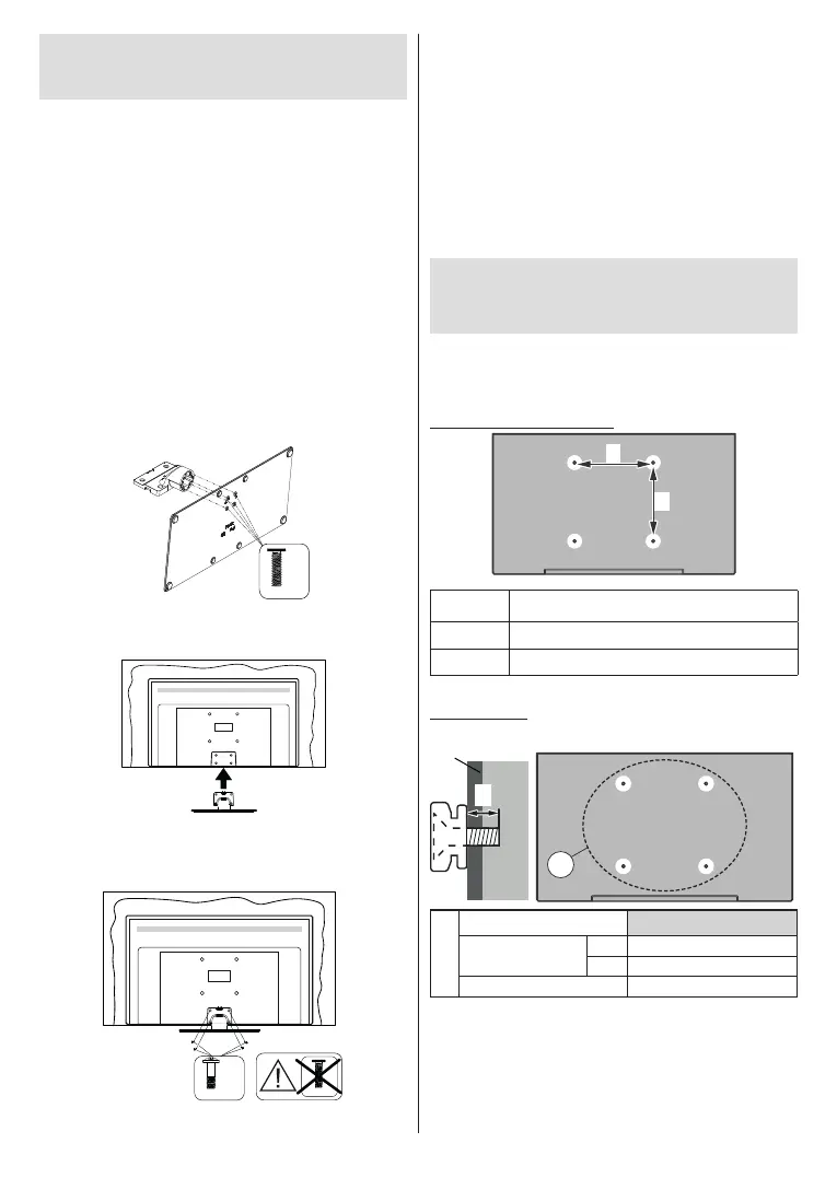 Nota: Le viti per il ssaggio della TV mediante staa a parete