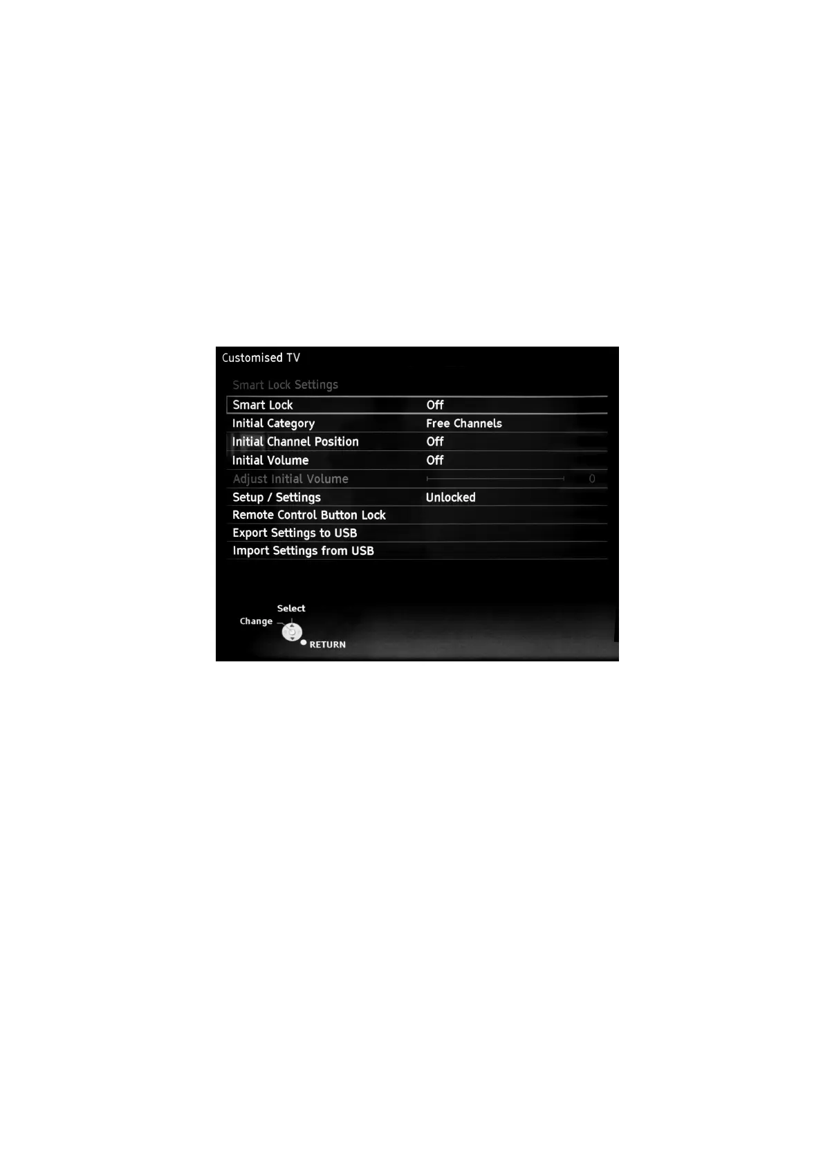 Smart Lock (Customised TV) Menu is only enabled on DVB input. Menu will not launch on Analogue or any External input.
