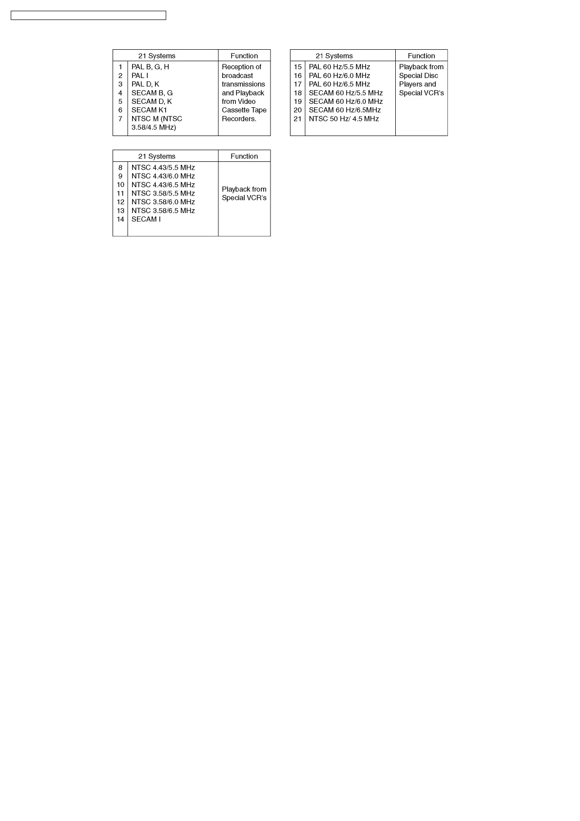 Receiving Stereo System NICAM I, NICAM B/G, NICAM D,