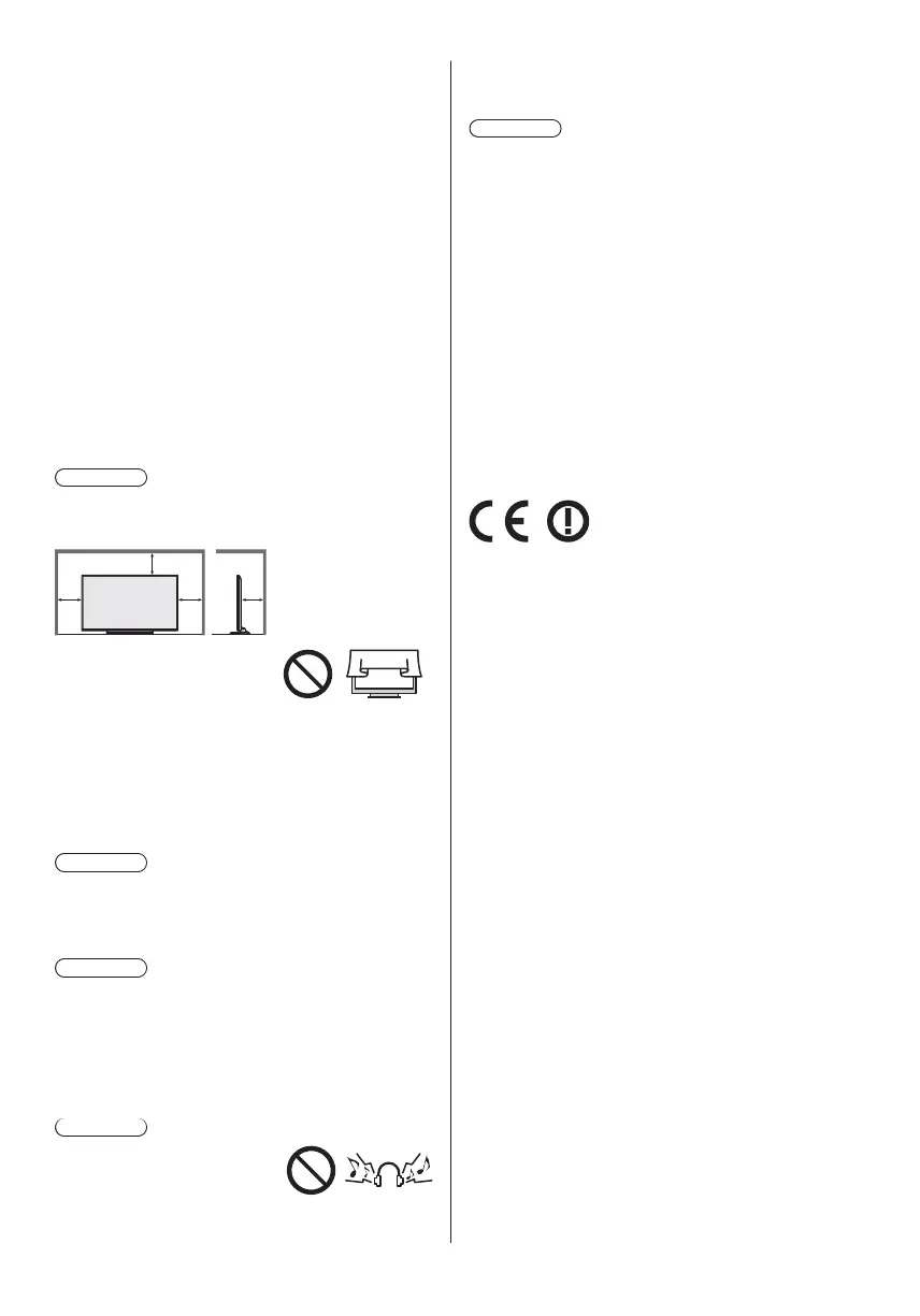 Allow sufficient space (at least 10 cm) around the TV in