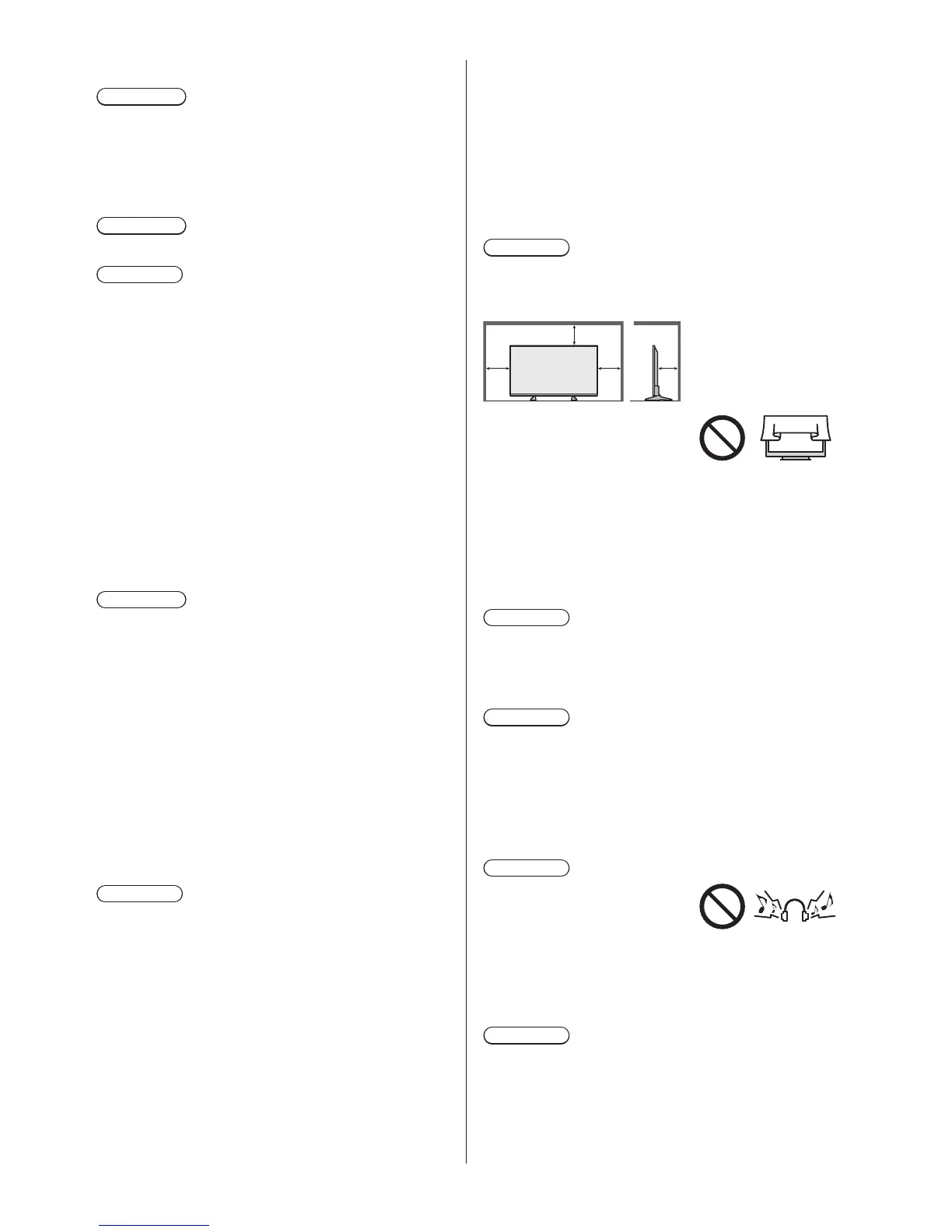 Allow sufficient space (at least 10 cm) around the TV in