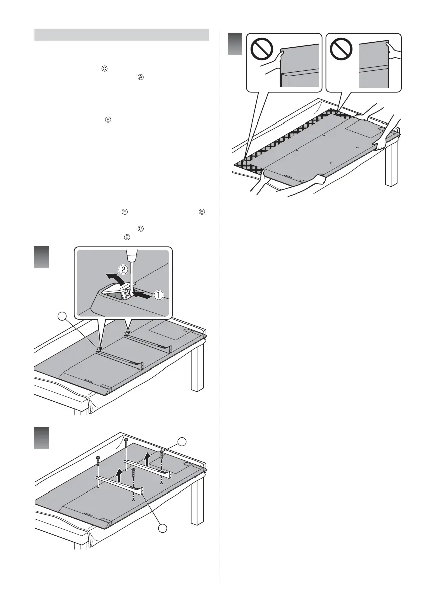 When moving the TV, support the TV as shown in