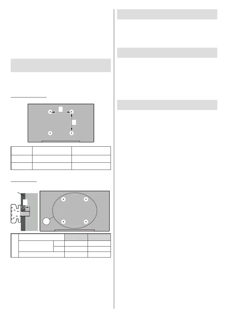 Bemærk: De skruer til montering af TV'et på vægbeslag