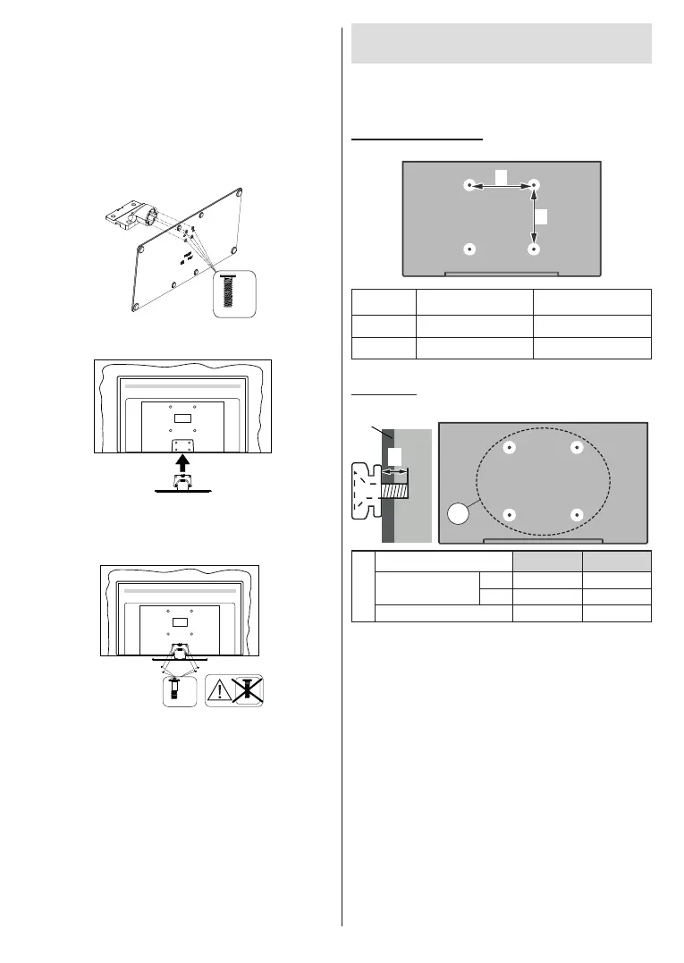 Megjegyzés: A TV-készüléket a fali tartóhoz rögzítő csavarok
