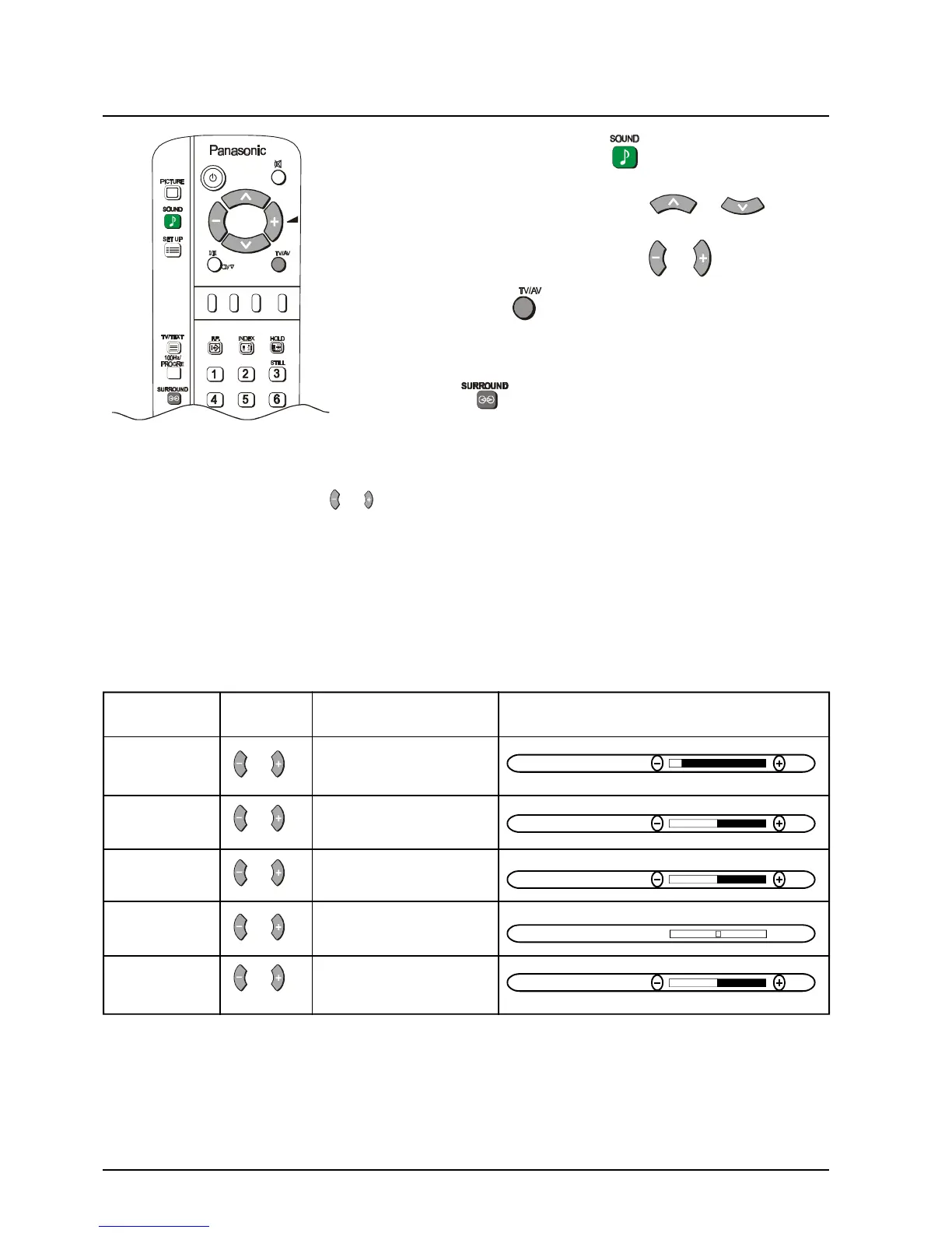 2. Sound menu levels can be set for TV, AV1, AV2, AV3 and AV4 modes.
