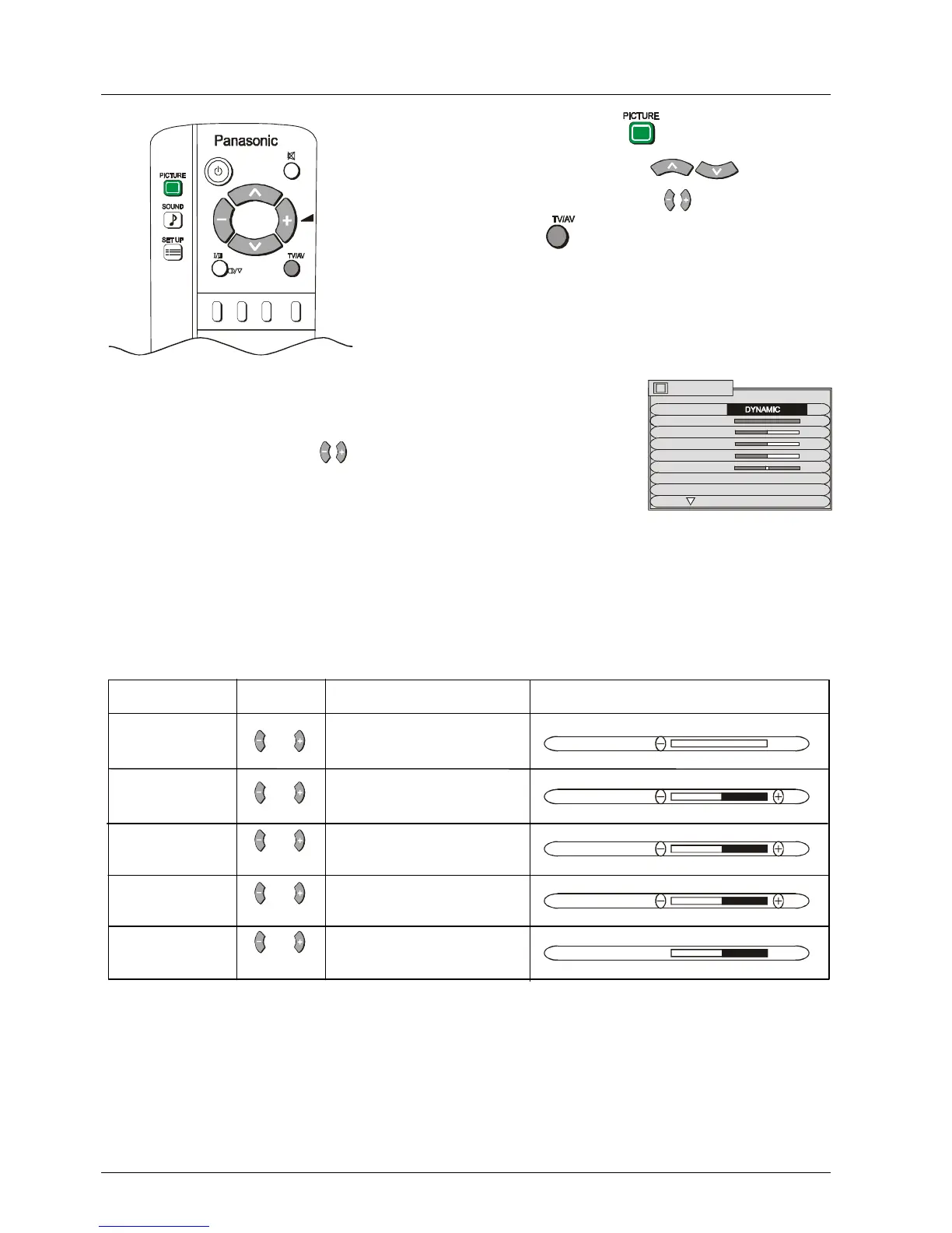 2. Picture menu levels can be set for TV, AV1, AV2, AV3 and AV4 modes.