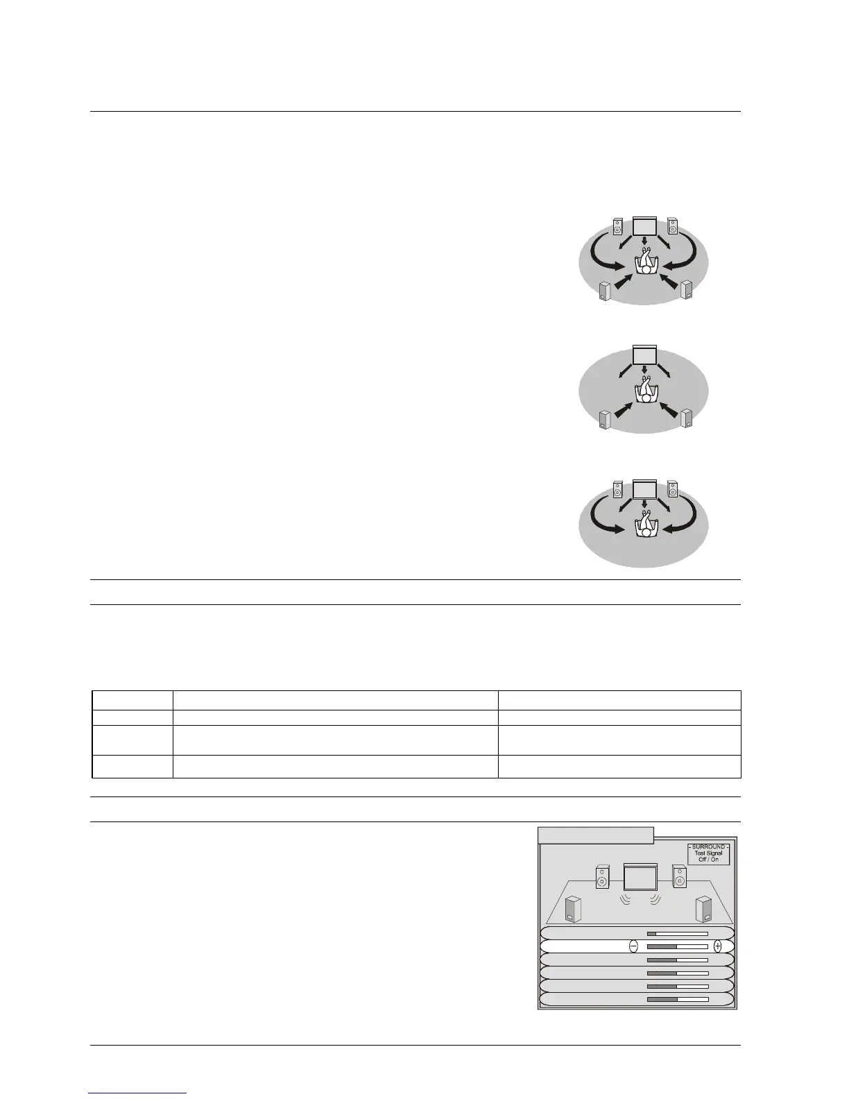 either the TV sound or the test signal provided. Pushing the SURROUND