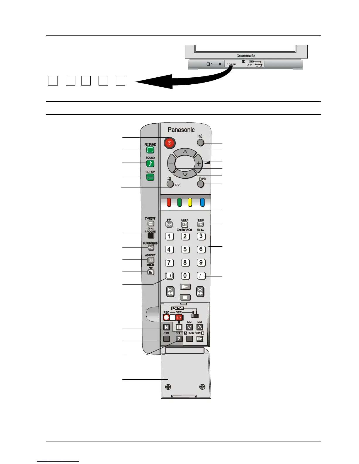 For details of VCR, LD player and DVD player remote control operation, please refer to page 33.