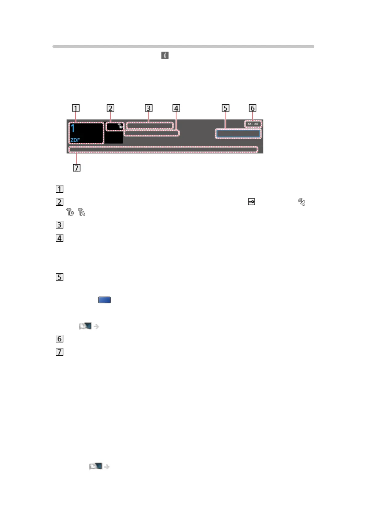 Channel type (Radio, HDTV, etc.) / Encrypted channel ( ) / TV mode ( ,