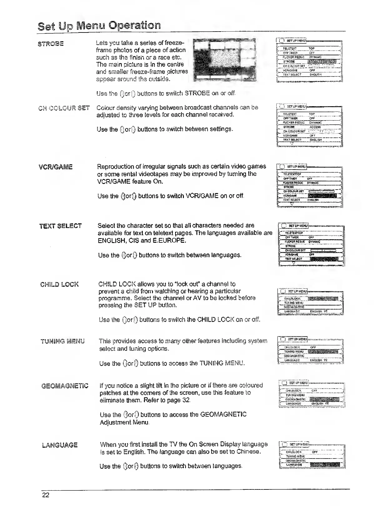 Panasonic TX-86PW100A - Strobe.21; Colour Set.21; Vcr;Game.22; Text Select.22