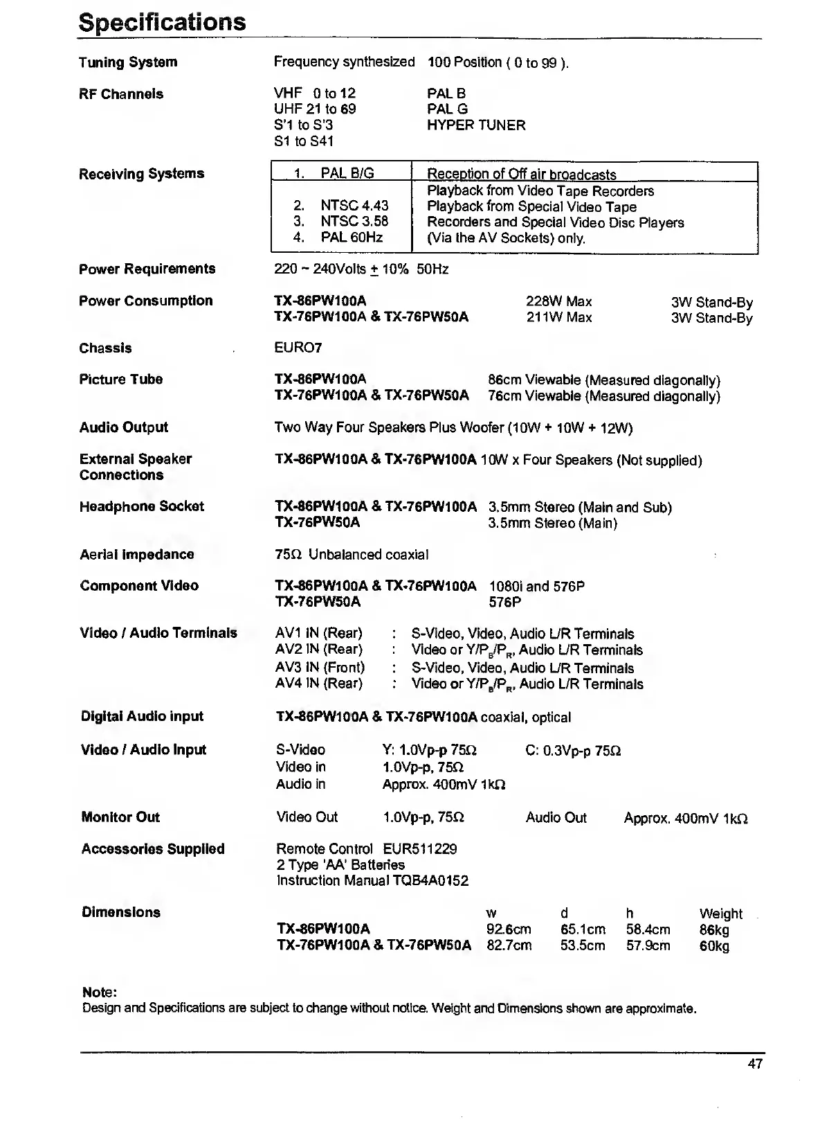 Panasonic TX-86PW100A - Page 47