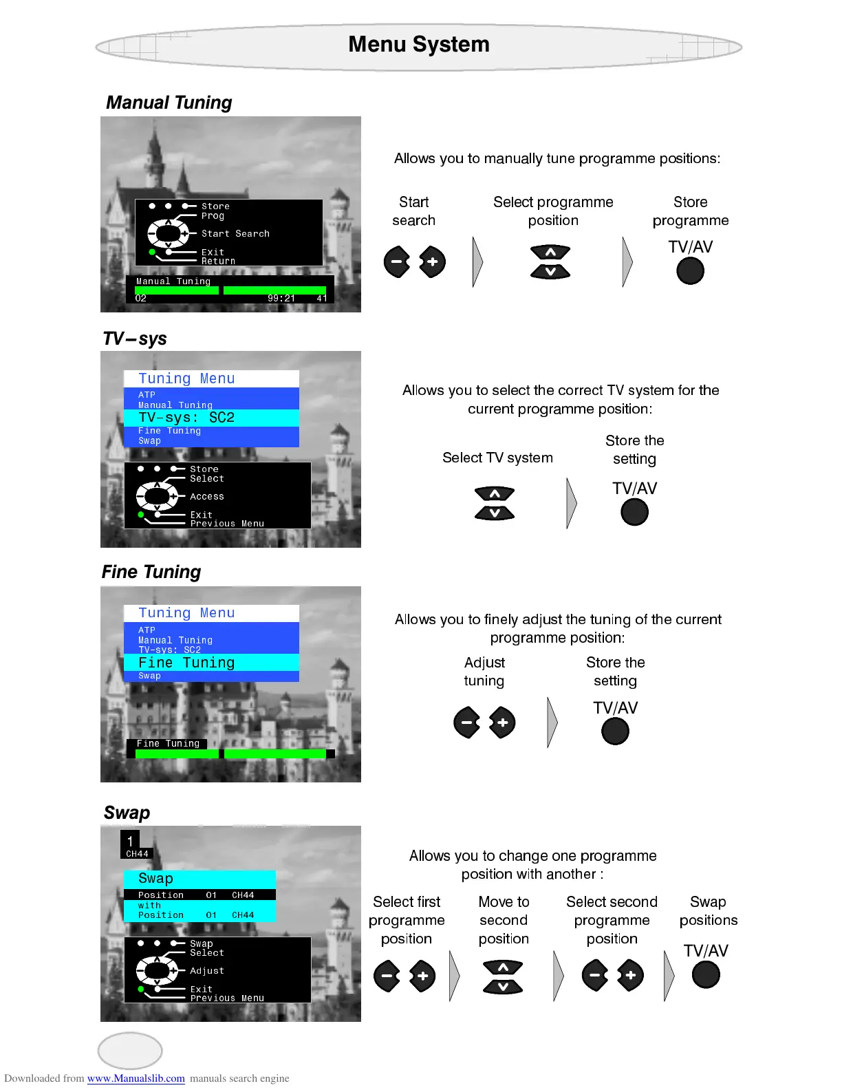 Panasonic TX-G10/C - Menu System (Tuning Options); Manual Tuning; TV System Selection