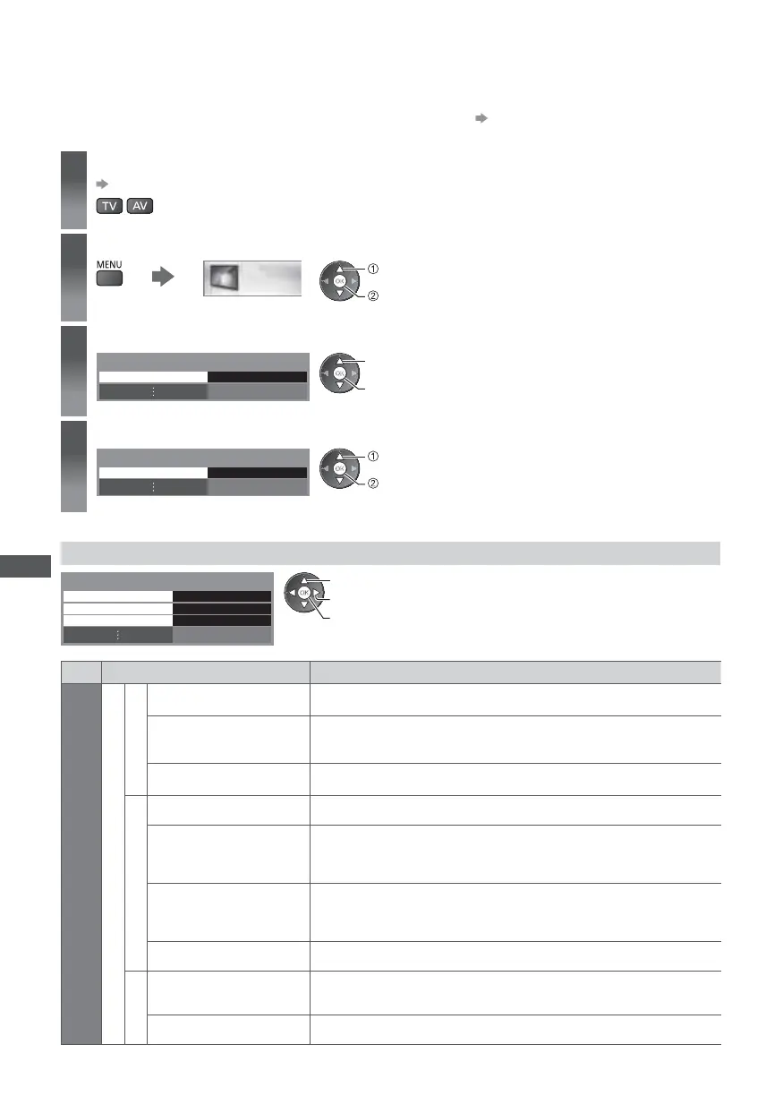 You can adjust and setup the detailed picture settings for each input and Viewing Mode.