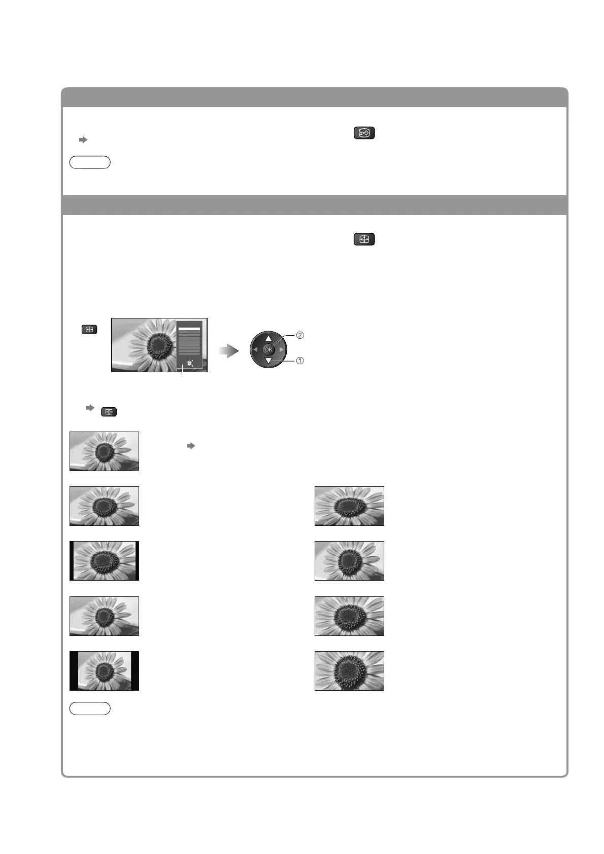 Display Aspect Selection list While the list is displayed, select the mode