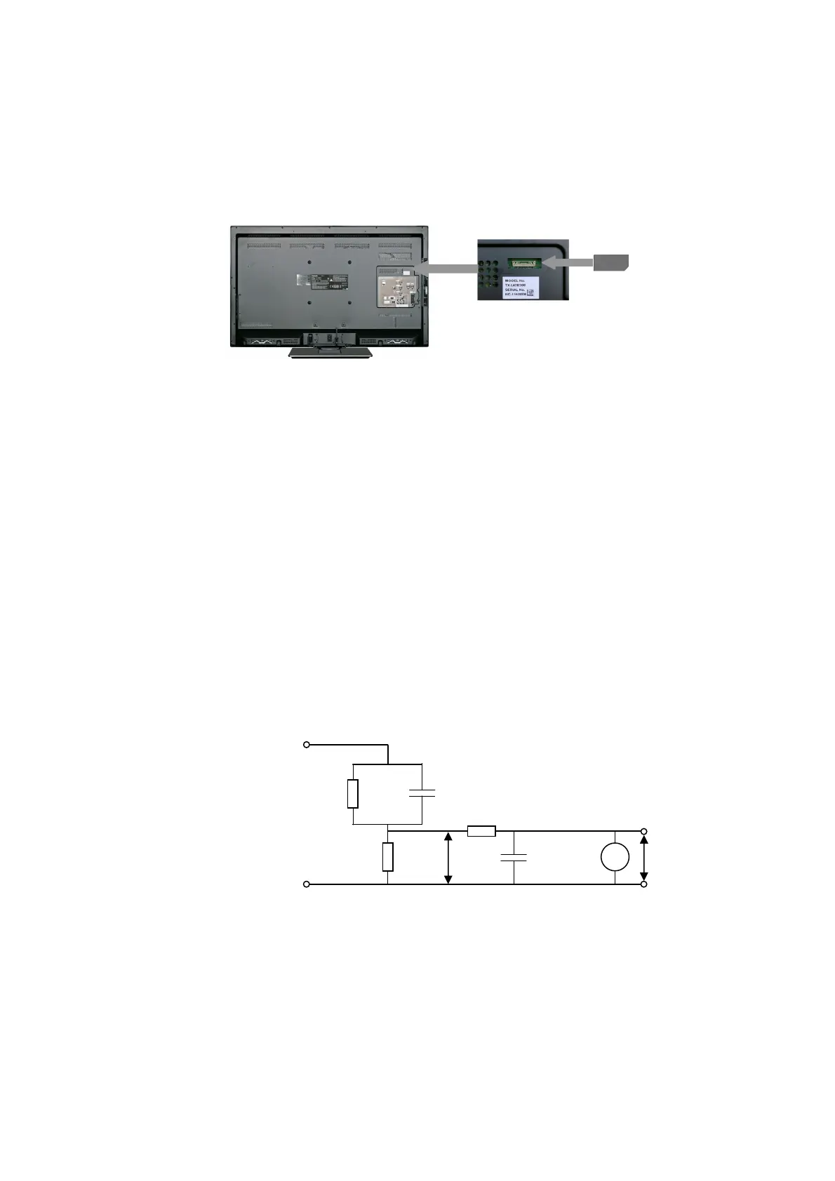 2. Connect a measuring network for touch currents between each exposed metallic part on the set and a good earth