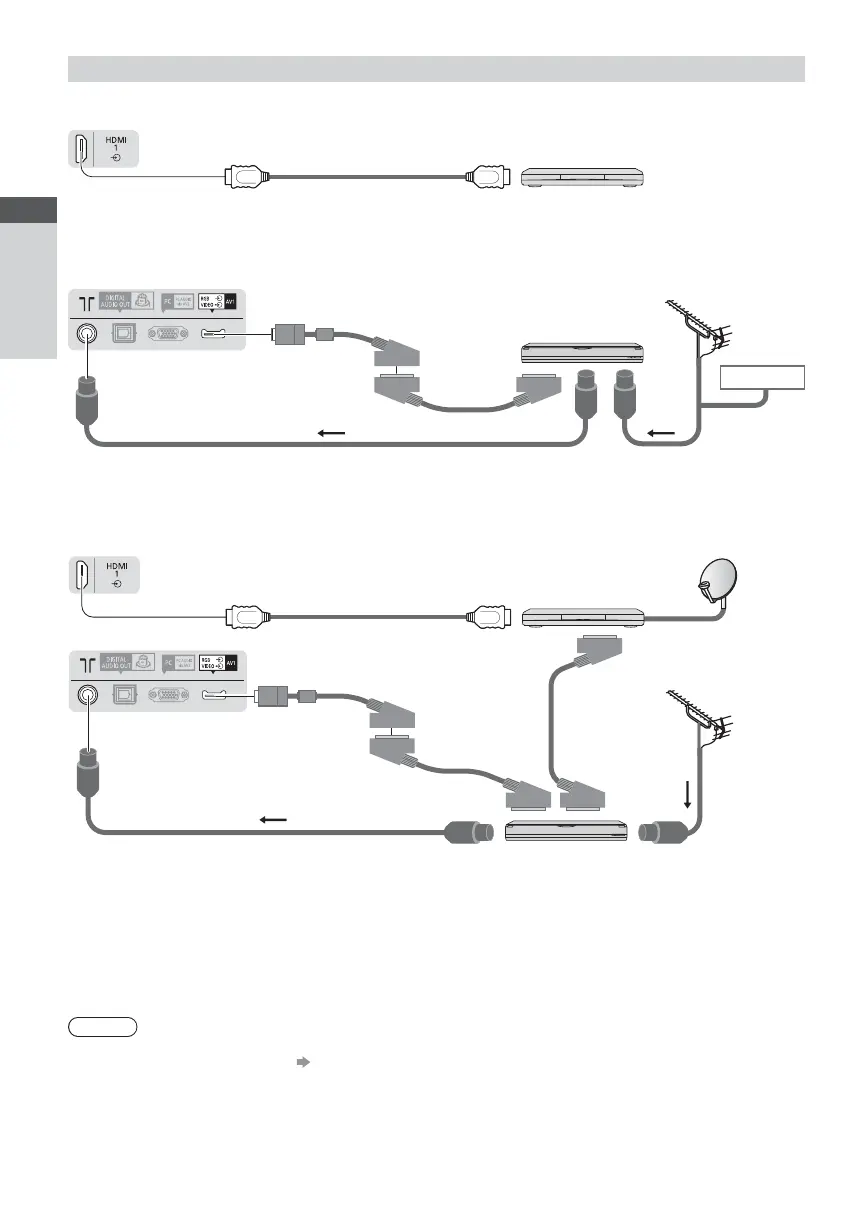 Connect to the TV’s AV1 for a DVD Recorder / VCR supporting Q-Link (p. 75).