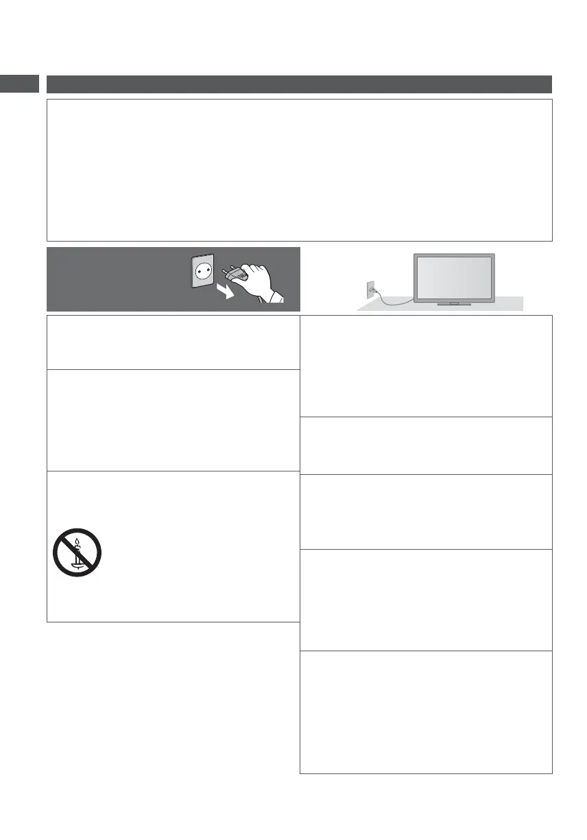 Insert the mains plug fully into the socket outlet. (If the mains plug is loose, it could generate heat and cause fire.)
