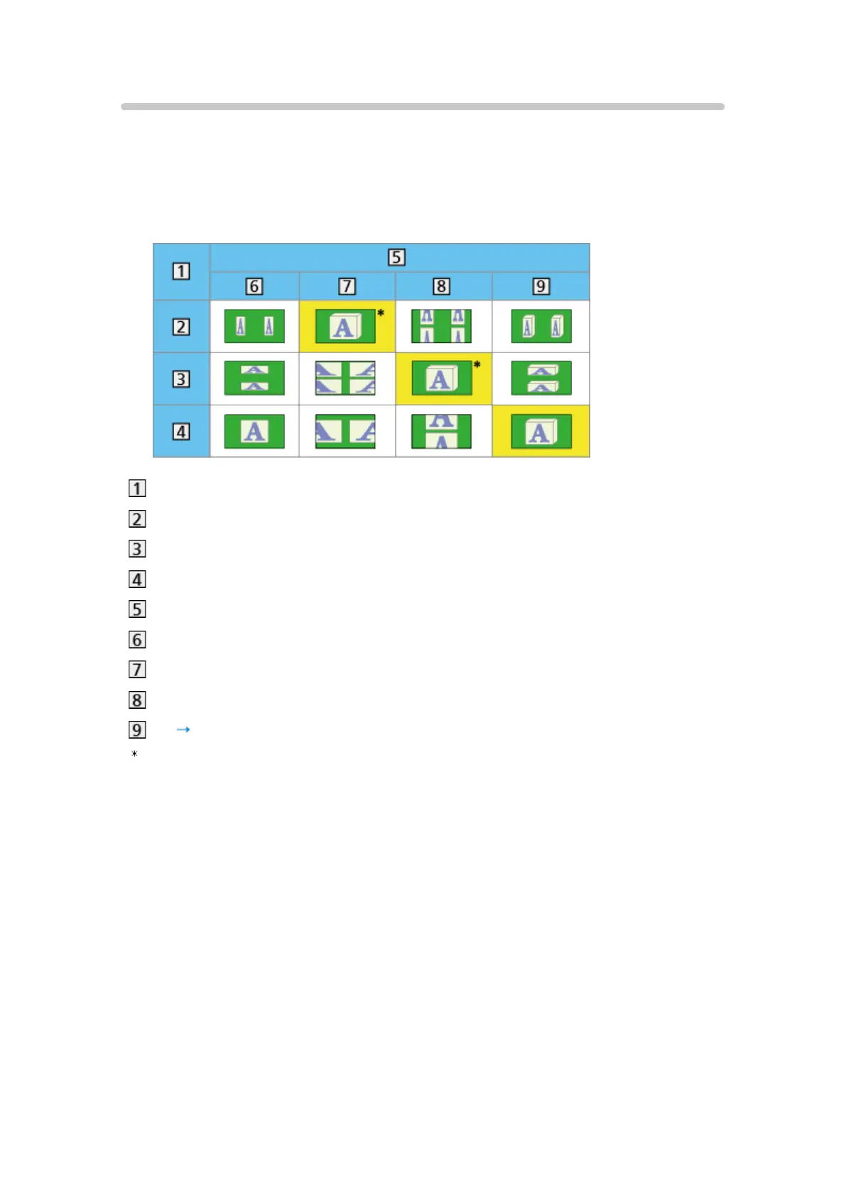 seen for each 3D Mode Selection (Manual) and the source image format, and
