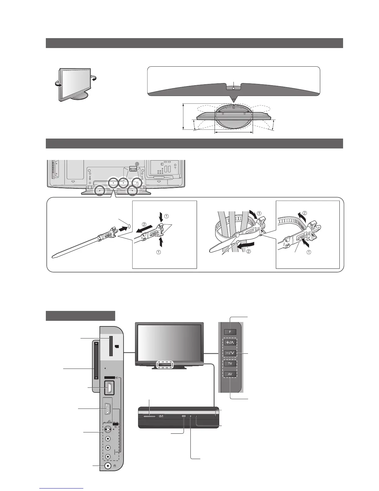 Ensure that the pedestal does not hang over the edge of the base even if the TV swivels to the full rotation range. ●