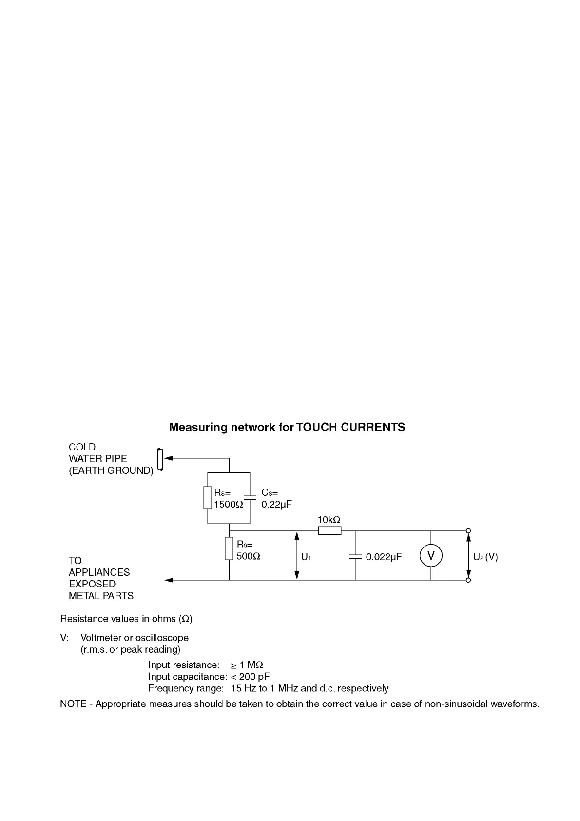 3. Use Leakage Current Tester (Simpson 228 or equivalent) to measure the potential across the measuring network.