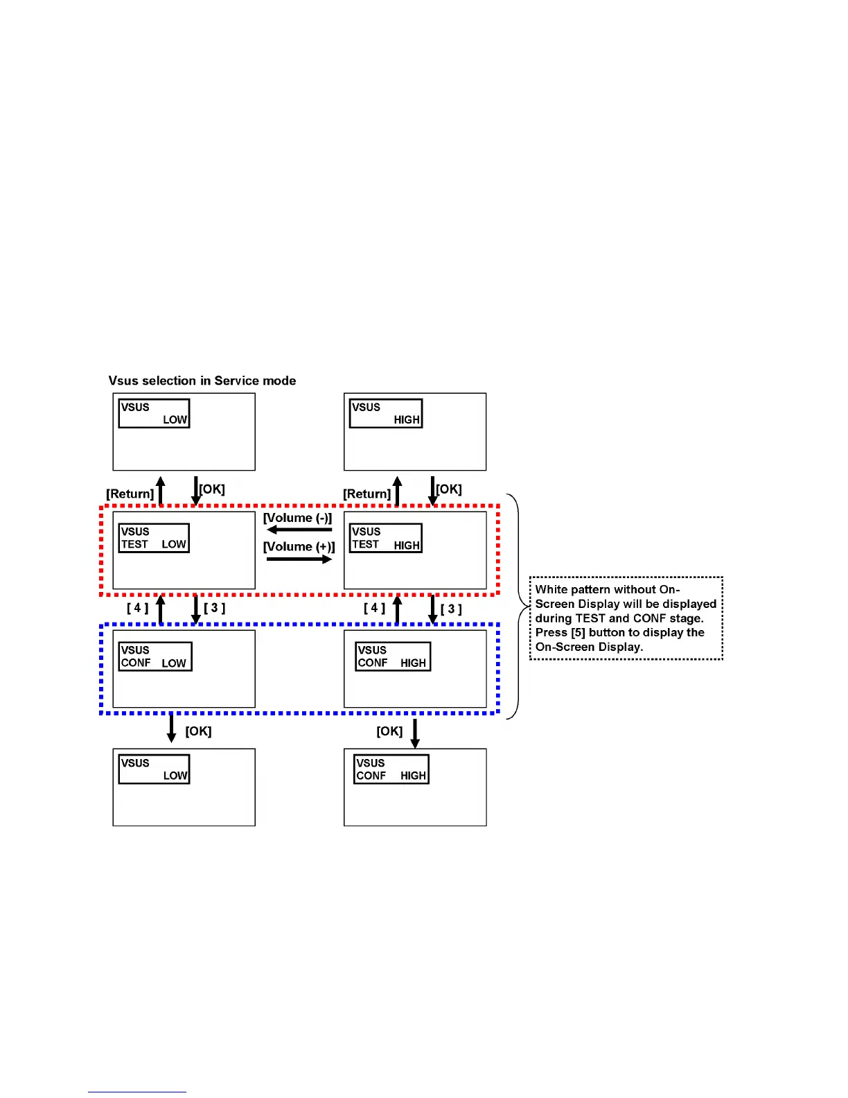 1. Go into main item [VSUS] in Service Mode. LOW or HIGH will be displayed.