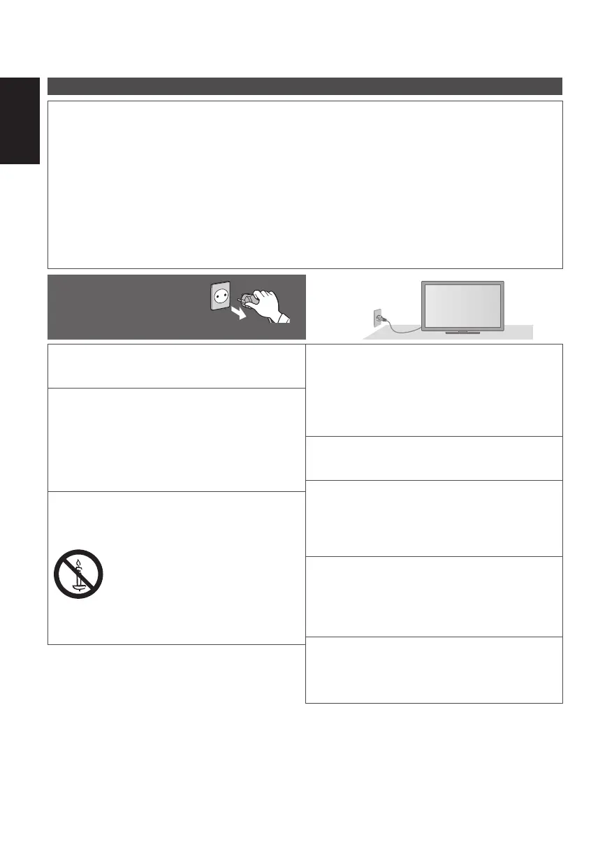 Insert the mains plug fully into the socket outlet. (If the mains plug is loose, it could generate heat and cause fire.)