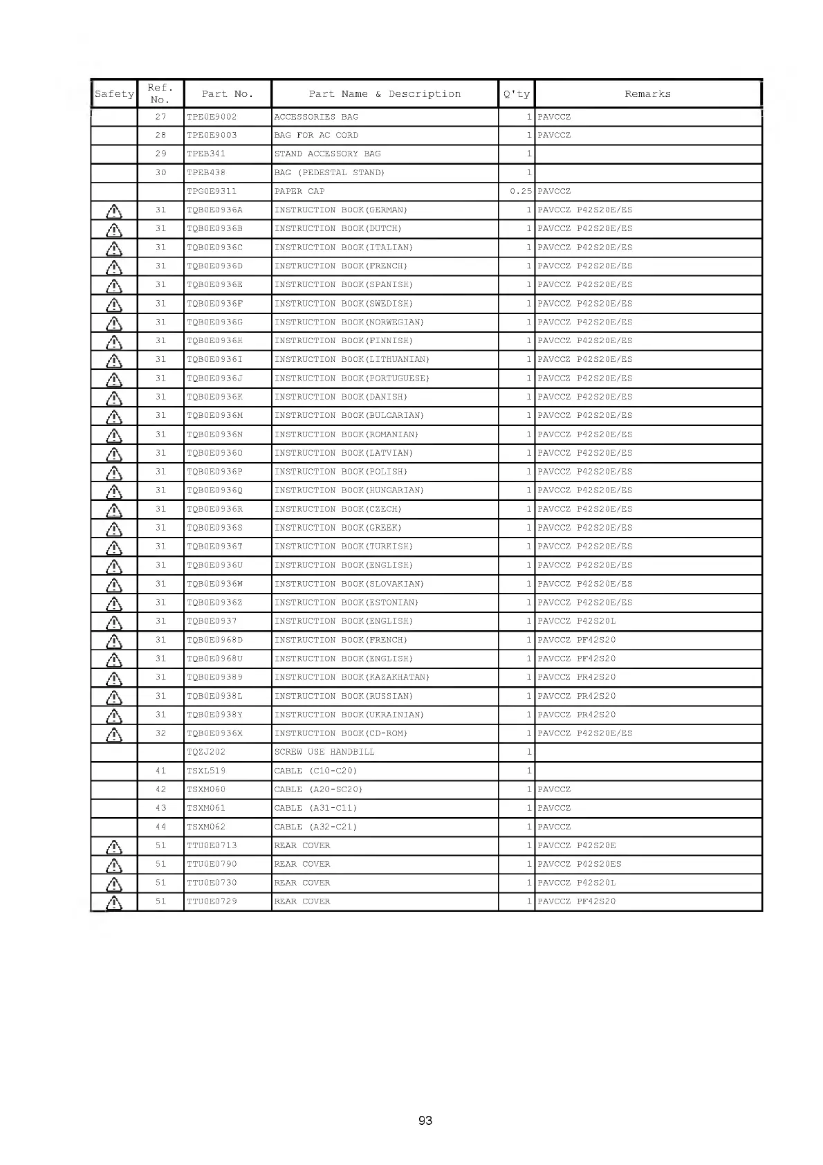 32 TQB0E0936X INSTRUCTION BOOK(CD-ROM) 1 PAVCCZ P42S20E/ES